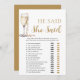 "Guldpärlor och Prosecco Han sa, Hon sa-leken" är ett förtjusande tillägg till din bröllopsfest. Med eleganta guldpärlor och prosecco-motiv ger detta spel en touch av sofistikering till evenemanget. Gästerna kommer att njuta av att gissa vem som sa vad när de delar anekdoter och minnen, vilket gör det till en rolig och minnesvärd upplevelse för alla.
