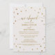 Detta vigselmottagningskort med guldpolkagrar är perfekt för en elegant vigselceremoni. Den enkla designen har chic guldconfetti på en krämig champagnejfärgad bakgrund med vacker falsk guldfolie kalligrafi och en marinblå baksida. RSVP-kort säljs separat.