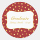 Vackra gyllene prickar på vinröd bakgrund Examensdekal. Texten är redo att anpassas.