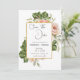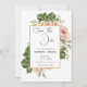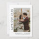 Detta eleganta Spara Datum-kort har en guldram med en akvarellros och en gren med grönska som bakgrundsmall. Orden ”Spara Datum” är skrivna med svart teckensnitt på vit bakgrund. Paret namn, datum och plats för bröllopet ingår också i svart teckensnitt på vit bakgrund. Ett elegant foto av paret läggs till kortet med deras namn och datum och plats för bröllopet skrivna nedanför.