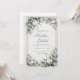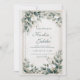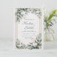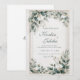 Skapa ett tidlöst och förfinat första intryck med denna eleganta bröllopsinbjudan. Designen är satt mot en lyxig, ljusbeige bakgrund med en subtil marmor- eller stentextur, vilket ger en sofistikerad och exklusiv grund. En delikat falsk guld geometrisk rektangulär ram omger det centrala området för dina evenemangsuppgifter, vilket ger en touch av glänsande klass. Ramen är vackert kransad i två motsatta hörn av en frodig samling dämpad grönska och mjuka blommor. Lövverket inkluderar vackra nyanser av dammig salvia grön och blågrå eukalyptusblad, vilket etablerar en lugn och modern palett. Vita, skiktade blomknoppar (som påminner om ranunkel eller peonior) fungerar som de eleganta fokuspunkterna, kompletterade med fina vita och gyllene blomspröt som lägger till textur och rörelse. Denna moderna klassiska stil är perfekt för par som är värdar för en formell trädgårdsfest, en klassisk balsalssmorgas eller något evenemang som söker en förfinad, luftig och sofistikerad estetik. Denna design är perfekt för klassiska bröllopsinbjudningar, formella förlovningsfestannonser, eleganta
