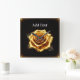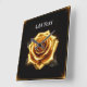 En detaljerad guldros omgiven av strålande kanter, mot en djup svart bakgrund. Elegant och lyxig atmosfär idealisk för dekorativa, romantiska eller festliga designs.