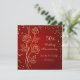 50-års bröllopsdagskort med stiliserade gyllene rosor och konfetti mot en röd bakgrund. På baksidan av inbjudan finns en guldkonfetti på en gyllene bakgrund