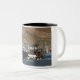 Guldrusch som fiskar trawleren i holländsk hamn, Två-Tonad mugg