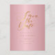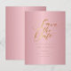 Detta eleganta spara-datum-kort har en elegant guldskrift spara-datum-typografi ovanför dina detaljer som är satta i elegant guldbokstav på en rosa guld-bakgrund. Designad av Thisisnotme