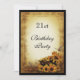 Eleganta personliga skräddarsydda 21-årsfirande inbjudningskort för kvinnor och flickor. På framsidan av dessa glamorösa feminina födelsedagsinbjudningar finns en vacker bild av en korg med gyllene solrosor och två/2 fjärilar med en vintage gyllene pergament med band tryckt på en slät svart bakgrund. Denna förtjusande arrangemang av fantastiska blommor gör denna födelsedagsinbjudan till den perfekta romantiska inbjudan för kvinnor. Dessa glamorösa, fancy, stilfulla, sofistikerade, feminina inbjudningar är dekorerade/tryckta på båda sidor. Dessa är chic, stilfulla, romantiska födelsedagsinbjudningar för kvinnor och flickor i alla åldrar. Perfekt för vår-, sommar-, höst- eller vinterevenemang. All text är helt
