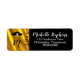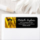 Elegant etikett för returadress med examenshatt, initial och år på tryckt guldton bakgrund till vänster och lätt vit namn och returadress på svart bakgrund till höger. Perfekt för dina firande postutskick. Design av Holiday Hearts Designs (rättigheter reserverade).