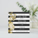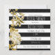 Guldtonad Blommig Svart & Vit Randig Inbjudan. Anpassa för valfri händelse.