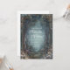 Denna fantastiska bröllopsinbjudan är mycket överdådig, magisk och romantisk och fångar den frodiga scenen av en förtrollad skogsdunge. Den centrala vyn ramas in av två uppsättningar höga trädstammar och en förgrund tätt packad med botaniska blommor i mjuka rosa, mauve och krämfärgade nyanser. Bakgrunden är en mystisk, disig teal eller djup havsgrön som frammanar en mystisk, dimmig atmosfär. Hela bilden är kantad av en utsmyckad, överdådig guld- och tealram med invecklad barockaccent och guldmetallfiligran som vrider sig runt toppen och sidorna. Det övergripande temat är en lyxig nattlig trädgård eller sofistikerad fantasi, perfekt för en svart-kavaj kvällsmottagning, en midsommar-nattdrömsfest eller en mycket elegant, naturinspirerad galafest. Denna utsökta brevpapper är också väl lämpad för en formell årsdagsfirande eller en lyxig