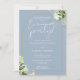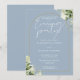 Denna eleganta guldvalv botanisk grönska blomster dammig blå bröllopsfest kvällsfest inbjudan kan anpassas med din information i chic typografi. Designad av Thisisnotme©