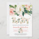 Det är en charmig inbjudan till babydusch som blåser rosa blommigtar med färsk grönt löv och guld foil brev.