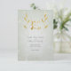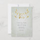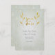 Fint guld löv, guld-folie-effekt på sage grönt glasliknande bakgrund, utgör en enastående inställning till dessa bröllopsdag Spara-Date-kort. Perfekt för teman som är formaterade med guld och många andra inställningar. Lägg bara till egna uppgifter i mallområdet ovanför högerna och om du behöver ytterligare ändringar klickar du på knappen "Anpassa" ovan. Observera att det här är platta, tryckta kort och att guld-folieeffekten är en högkvalitativ bild av vår egen design. Matchande bröllopsinbjudningar, OSA, bordsnummer kort, porto frimärke och tackkort finns tillgängliga.