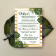 Fira i stil med dessa tropiska och mycket trendig detaljkort för bröllop. Utformningen har en vit och guld-chic med strimlad bakgrund med tropiska löv i handflatan och matchande ordalydelse i en djup skugga av grönt... bedövning och helt enkelt perfekt för alla par som planerar en destination eller strandtemat i bröllop firande. Den här utformningen är enkel att anpassa med din speciella händelsetext och dina gäster blir glada när de tar emot dessa fantastiska kort. Matchande objekt i bröllop finns i samlingen.