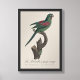 En detaljerad naturhistorisk illustration från en vetenskaplig publikation från 1800-talet, är denna bild ett fint exempel på Jacques Barrabands arbete, en framstående fransk illustratör under eran. Planschen, med titeln La Perruche à gorge rouge och med den art som idag är känd som Orange-chinned Parakeet (Brotogeris jugularis), är en noggrant utförd gravyr från det banbrytande verket "Histoire Naturelle des Perroquets", publicerad mellan 1801 och 1805 med text av François Levaillant. Barrabands skicklighet är tydlig i fågelns livaktiga hållning och den otroligt detaljerade fjäderdräkten, som fångar de unika texturerna och färgerna hos arten.