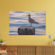En ung western gul står på en hägnad betongstation. Fågeln har grått- och bruna fjädrar och en mörk. I inlägget visas tecken på ålder med rostfläckar och en grov struktur. Bakgrunden är en kropp av vatten med milt vinkart, som reflekterar mjuk rosa och blått nyanser från himmel. Den allmänna stämningen är lugn och säkerhet.