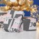 Gullig helgdagdesign med en illustration av en vitkatt som ha på sig den rosa beanien och den stack scarfen. Snöig med kolbakgrund. På katt buk det något att säga "glädje.", Det grafiskt gjordes in i ett mönster. Underbar design för kattälskare! Använd detta för julgåvainpackning.