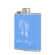 En gullig baby blue flaska för pojkefödelsemeddelande med nyfödda bebisfotspår. Personifiera, genom att tillfoga namn av den dyrbara nyfödd bebispojken till det beställnings- textområdet och ge det som en baby showerpartyfavör. Original- konst©TracieKaska