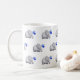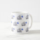 Denna gulliga mugg täckas med ett mönster av härliga bebiselefanter med blåtthjärtaballonger på ett mjukt baby blue slipat. En original- design som är tillgänglig exklusivt på det on-line lagret för ©EleSil