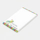 Denna 4x6 Postar-it® anteckningsboksärdrag ett grafiskt av en grön bokmal som överst sitter av en bunt av bokar. Posta-it® noterar betonas med primära färgadrandar på det bästa och nedersta. Grunden av vaddera läser "EN NOTERA FRÅN" med anpassadetext för lärare namn. Detta gör en underbar läraregåva.