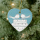 Denna keramiska helgdagprydnad gör en original- bröllopgåva och en uppskattad minnessak för den nya maken och frun till visning på julgranen för år till komen. Gulliga fåglar kysser överst av den tiered bröllopstårtan för vit. En söt nygift person kopplar ihop. Personifiera din text på baksidaen med namnen av bruden och ansa, och bröllop daterar. Denna gulliga julprydnad är delen av en samling av produkter för bröllop för vitfågel themed vid Jenns klottervärlden.