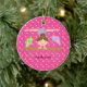 Denna är en förtjusande julprydnad för den gymnast i ditt liv! Det är en gullig gymnast. Hon ha på sig en purpurfärgad bodysuit. Bakgrunden är shock rosa med vitpolka dots. Hon gör en handstans på en balansbom. Bredvid henne är en lavendelskyttestjärna och ett ljust - göra grön en på andra sidan. Kontrollera ut de många andra designerna, och färger i denna fodrar. Cherish denna minnessak för många, många år! ©JWillustrationer