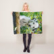En gullig sju veckor gammal svart prickig Dalmatian valp som står i en vide- basket i en blommig trädgård. Densynade bebisvovven fotograferades av Katho Menden, detta mjukt, och den mysigt ullfilten är en förtrollande gåvaidé för doglovers. http://www.zazzle.com/kathom_photo