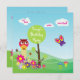 En gullig och gladlynt design av en ängplats, med träd, blommor och champinjoner. En rosa uggla och ett violett fjärilsgeliv till detta lyckliga ställe. Skräddarsy denna färgrika plats med din inbjudantext. Gör den perfekta inbjudan för ungt barn som den lika naturen och det fria.