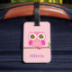 Gullig flickaktigt rosa uggla på gren för flickor bagagebricka