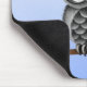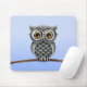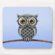 Gullig fluffig grå uggla med exponeringsglas som musmatta