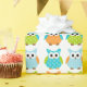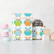 Den gulliga födelsedagugglan som slår in papper som presenterar blått, grönt och den orange polkaen pricker ugglor. Några inslag JDDigiDesign