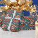 På krickagröntbakgrund. Det finns någon stjärnor, prydnadar, snöflingorhjärtor och presenter. Trevlig och gullig julgåva för alla.