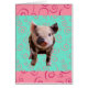 Gullig gris - blått & rosan virvlar runt hälsningskort