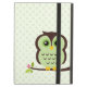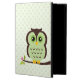 Det stilfulla beställnings- foliofodral för ipads presenterar en söt vektorillustration av en uggla perched på en trädgren på en polka dotsmönsterbakgrund.