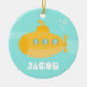 Gullig gul ubåt som är undervattens-, för pojkar julgransprydnad keramik