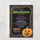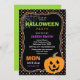Gullig Halloween dräkt/födelsedag-/julfestinbjudan. Pricker silar den gröna och purpurfärgade polkaen för orangen med spindelnätet och olyktan.