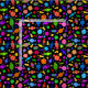 Ett gulligt mönster för Halloween som presenterar tecknadgodisen, klubbor, sötsaker och candy corn i en regnbågefärgintrig av rött som är orange, görar grön, slösar, ljusa rosor, gult och lilor.