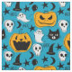 Halloween mönster av jacknolla-' lyktor, svart katt, häxahatt, döskallar, spöken, svart ballong, måne och stjärna. Teckningen gjordes in i ett mönster. Underbart tyg som ska användas för att göra bus eller godis, hänger lös för dina ungar!