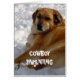 Det roliga westerna kortet erbjuder humoristisk ord av vishet, eller fånigbarnuppfostran tippar från våra vänliga ranchhundar. Lantlig sjukvårdhumor för nya föräldrar, förväntansfulla föräldrar eller föräldern av ett sjukt barn. Täcka särdrag ett foto av en guld- retrieverhund som tycker om snö; ett nötkreatur förföljer på baksidaen. Folks, som älskar lantligt liv, ranchliv, landsbygdsboende eller liv på den ska lantgården, förbinder! Du kan lämna kortbakgrundsvit eller välja en beställnings- färg. Från den original- "cowboyen som by uppfostrar serie" henne vargmedicin.