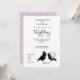 Eleganten stilfullt bröllop skrivar inbjudan med ett gulligt parar av love birds som poserar som bruden och, ansar i svart top hat, och vit skyler. Visat här i tonar av lila/purpurfärgat svartvitt med ditsy hjärtor; känselförnimmelsen frigör för att redigera den tillbaka färgen till en av dina egna primaa