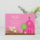 Rosa start för födelsedagsfest inbjudan för ladugårdgårdboskap ditt party av höger med vår förtjusande barnyard- & boskapinbjudan som presenterar en rosa på en rosa bakgrund med en gullig ko, gris, lamb, get och höna. Perfekten för en 1st födelsedag eller några åldras födelsedag. Fullständigt anpassadet av dig med din information och du är all uppsättning som går! ©Kelly Medina