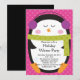 Starta din vinterjulfest av höger med vår gulliga pingvininbjudan som presenterar en pingvin som ha på sig en grön scarf med för att gå i ax muffs som är fastställda på den rosa polkaen prucken bakgrund. ©Pinkdesign