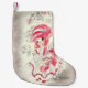 Gullig julängel med rött hår och järnek liten julstrumpa