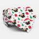 Mönster för julmopshund aveln med träd, presenter, snöflingor, Santa hattar och mops!