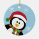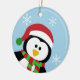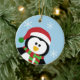 Den gulliga julpingvinprydnaden presenterar en pingvin med en jultomtenhatt i rött, vit och grönt och en röd och grön randig scarf runt om pingvin nacke och tre vitsnöflingor på ett ljust - slösa bakgrund. Klicka "skräddarsy den!", knäppas för att tillfoga text och mer!