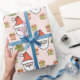 Gullig jultomten som slår in papper med en santa, en rentröja, en julgran och ett närvarande mönster på en blek peachy rosa bakgrund. Konstverk© Chrissy H. Studio, LLC. All reserverad rättigheter.