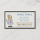 Rolig nyckfull visitkort som göras i primitiva diagram för ett land, visning en gullig bagareflicka i kockhattinnehav en muffin och träsked. En utklippstilkupong är på den omvända sidan. Perfekten för ett bageri shoppar, shoppar partyet, eller en oberoende beställnings- bagare. Skräddarsy textfälten för att personifiera för dig, eller ditt shoppa.