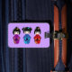 På detta objekt ser du 3 gulliga kawaiikokeshidockor på en purpurfärgad bakgrund.