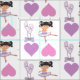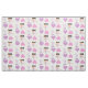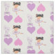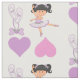 Detta tvåvägstyg presenterar en förtjusande mörk haired tecknadballerina i en lavendeltutu. Bredvid henne är en para av att matcha baletttofflor som binds med en pilbåge. En mörkare violett hjärta och rosahjärta växlar med ballerinaen och tofflor på det upprepade mönster. Bilder förläggas på en vitbakgrund. Gulligt!