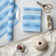 Denna gulliga beställnings- gåvasjal har en rolig undersea djur design med en gullig tecknadhaj. Det är blått och lilan och grinar med stora tänder och att dregla. Bakgrunden av det slående in papperet är vinkar skuggar in av blått.
