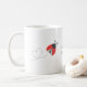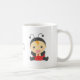 En mugg med en iklädd gullig lite flicka en nyckelpigadräkt med en rosa nappar i henne mun. En mycket liten nyckelpiga flyger, genom att lämna en hjärtaslinga. Texten läser "lite en dam är på henne långt!", En söt mugg som passas för att mammor ska vara vem har flickor.
